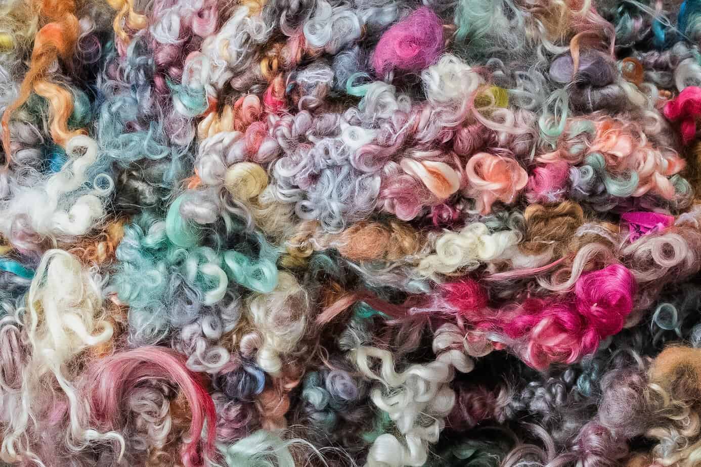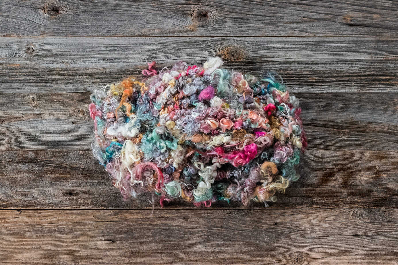 30 yards of Mohair/Teeswater Locks – pink/lav/green/blue/orange/white. Corespun/auto wrap, and plied with silk thread. Considered Chunky weight.